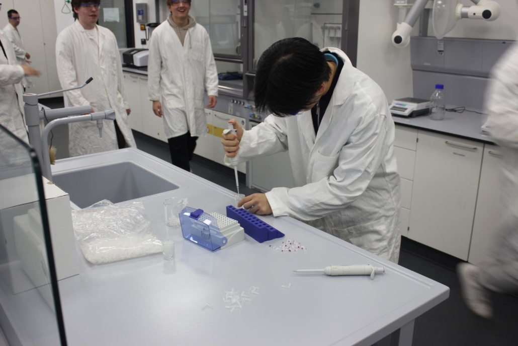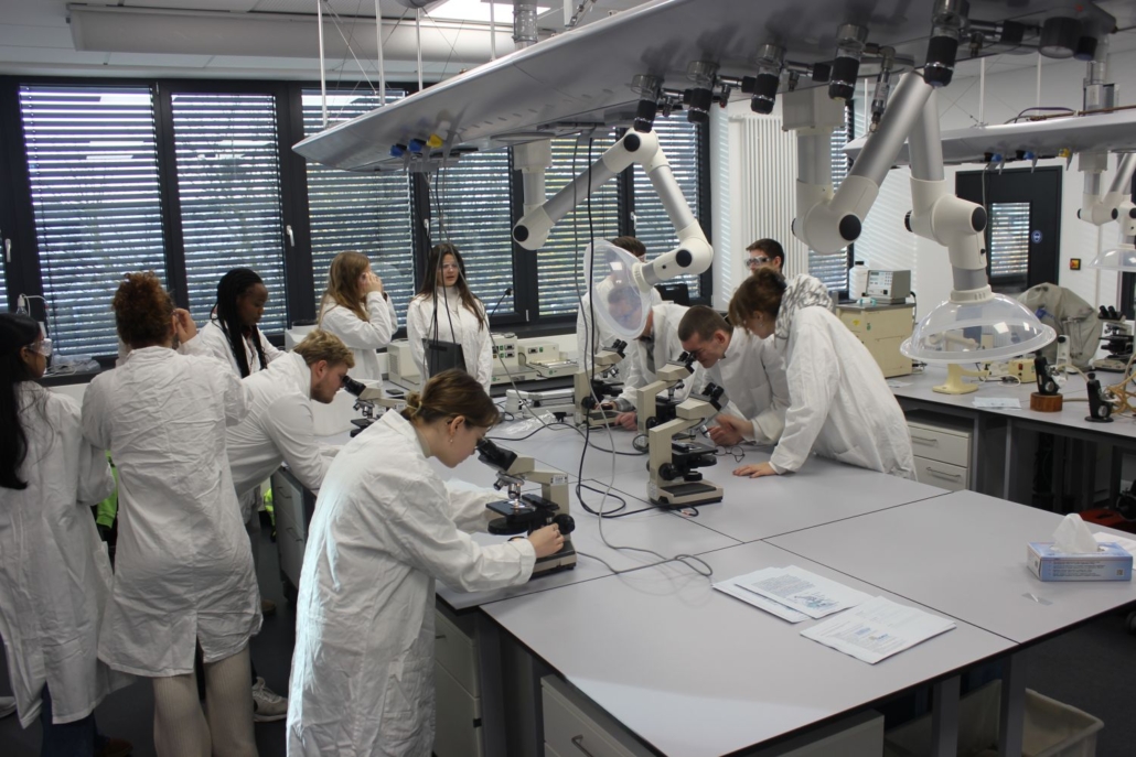 Im Anschluss wurden die Gäste in Gruppen eingeteilt und starteten in ein abwechslungsreiches Programm aus insgesamt drei Laboreinheiten. In den Biologielaboren ging es unter anderem um DNA-Spuren („Wer hat mein Bier getrunken? Homer Simpson auf der Spur!“), das Nahrungsverhalten von Protozoen und Wirbellosen („Wir haben Hunger, Hunger, Hunger!!!“) sowie um die Bedeutung von Enzymen in biologischen Prozessen. Besonders eindrucksvoll war für viele der Blick durchs Mikroskop: In einem der Biologielabore konnten die Schülerinnen und Schüler unter anderem Salzwasserkrebse beobachten – ein Angebot, das mehrere Teilnehmerinnen als besonders spannend beschrieben.