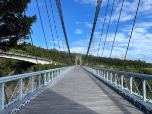 Am Morgen stiegen wir in die beiden Schulbusse und fuhren im Uhrzeigersinn eine ganze Weile um die Insel. Wir sammelten zwischendurch unser Mittagessen ein und kamen an einer alten Brücke vorbei, bei der wir kurz ausstiegen, ein paar Fotos machten und dann weiterfuhren.