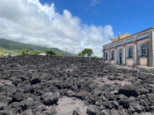 Der nächste Stop war eine Kirche, um die bei einem Vulkanausbruch die Lava herum geflossen ist, statt sie zu zerstören.