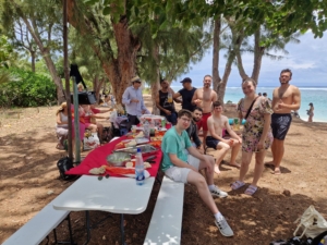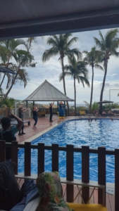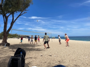 Baden ging an dem Tag leider nicht, da sich ein Hai im Wasser befunden hat und es verboten war, zu schwimmen. Wir haben trotzdem das Beste daraus gemacht, da wir uns mit einigen Lokals gut verstanden haben und mit ihnen Volleyball gespielt haben.