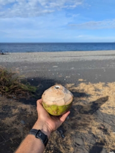 Nach der Fahrt sind wir zu einem Park gefahren und haben Kokosnüsse aufgemacht und ausgetrunken. Ich durfte auch ein paar Kokosnüsse aufschneiden und habe diese Gelegenheit benutzt, um die perfekte, malerische Kokosnuss aufzuschneiden.