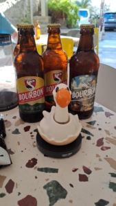 Dieses Geschenk hat mich sehr gefreut, genau wie der kleine Dodo, den mir die Lehrer geschenkt haben. Der ausgestorbene Vogel Dodo ist so etwas wie das Nationaltier von Réunion. Man findet ihn vor allem auf dem Bourbon-Bier, das hier eigentlich nur Dodo genannt wird.