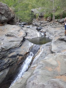 Das Wasser war eiskalt und kristallklar. Etwas weiter den Strom hinab kamen wir dann überraschend an wunderschönen Wasserfällen vorbei.