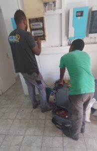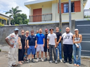 Gestärkt ging es um 13:00 Uhr weiter: Unser nächster Einsatz führte uns zum Bürgeramt Saint Clotilde, wo wir eine Steckdose verlegten. Eine etwas andere Umgebung als das Lager, aber gerade das macht den Job abwechslungsreich.