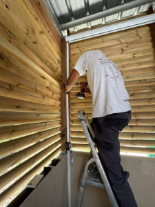 Danach ging es an die eigentliche Arbeit. Wir zogen CAT6-Leitungen durch eine sehr alte Zwischendecke, die teilweise bereits von Termiten beschädigt war – das machte die Arbeit deutlich kniffliger. Zusätzlich installierten wir Fensterkontakte für die Alarmanlage.